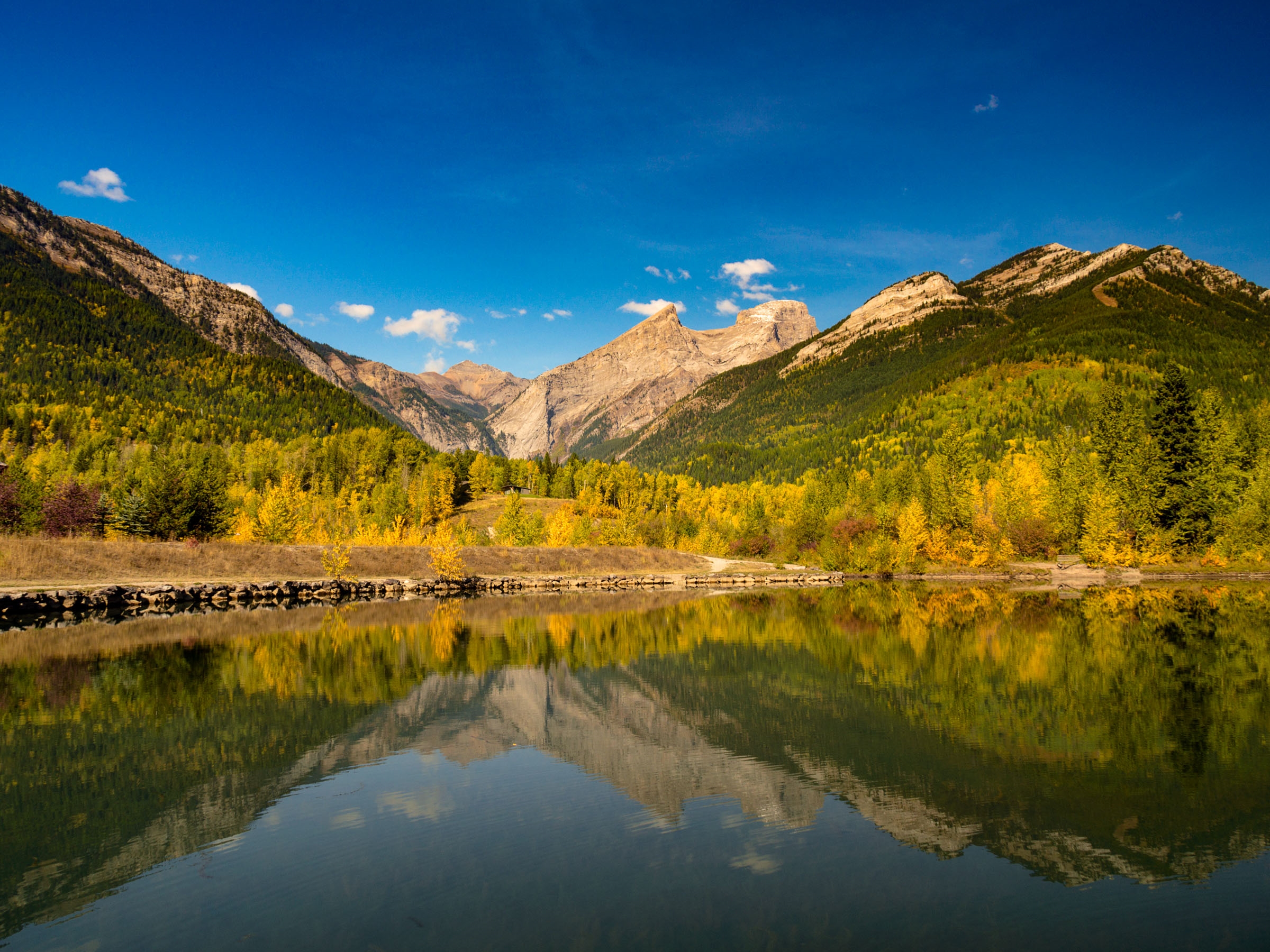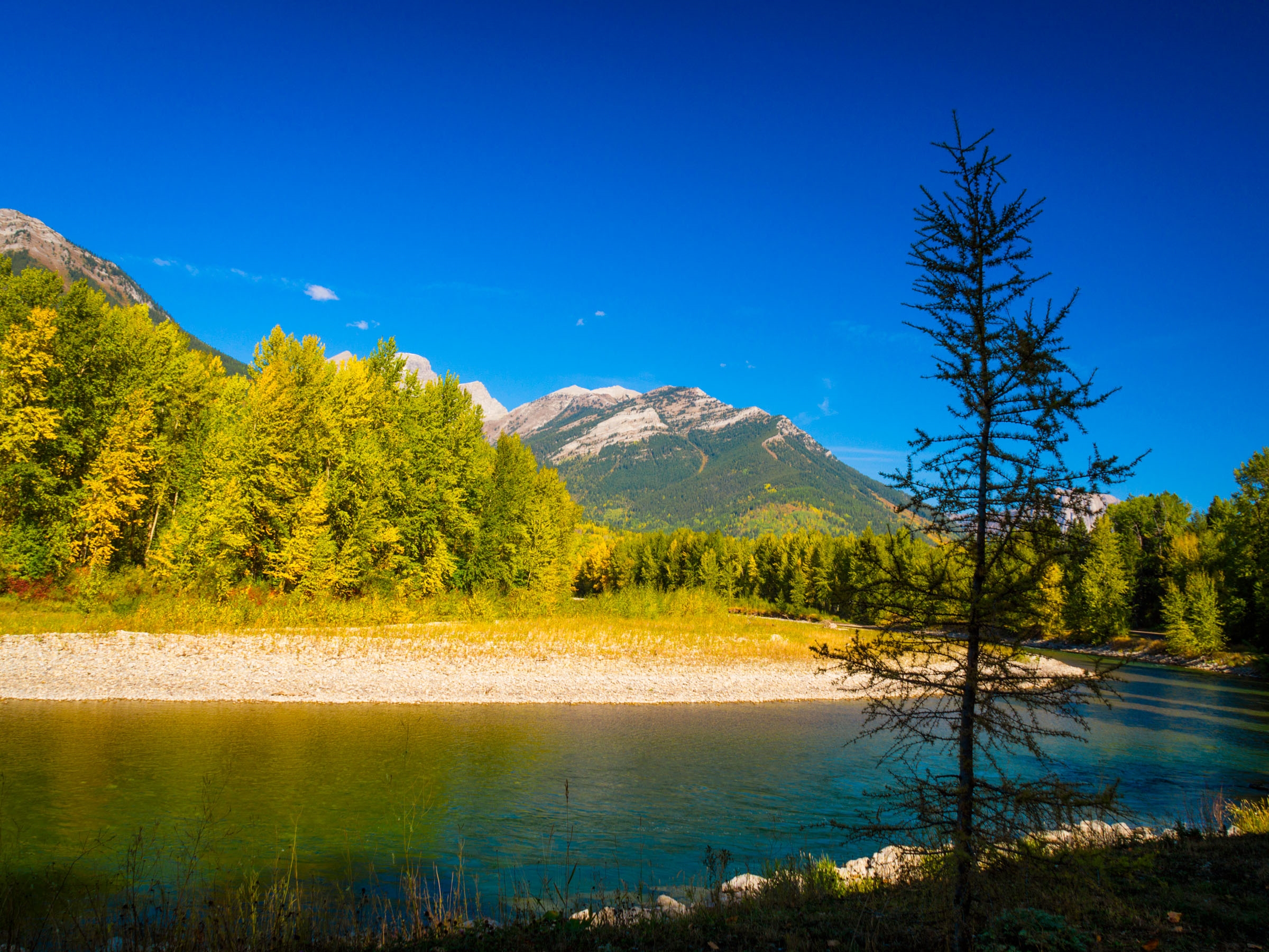 The Town Loop Trail follows the dyke along the Elk River forming a protective barrier during the spring melt. Along here you'll find some of the most stunning fall colour views.