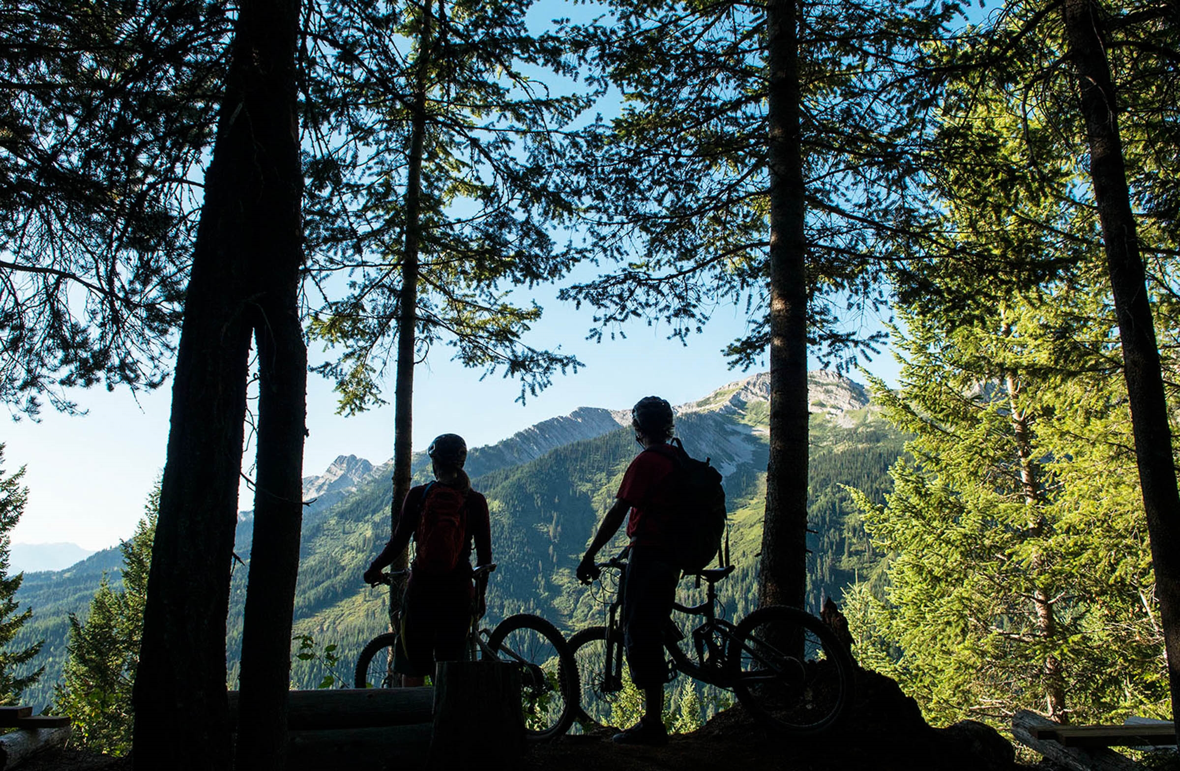 Lazy Lizard Lookout – The new Lazy Lizard bike trail includes machine-built berms, bridges and Old Growth forest. The photo spot offers a view of the Bears and Lizard Range. #islandlakelodge11