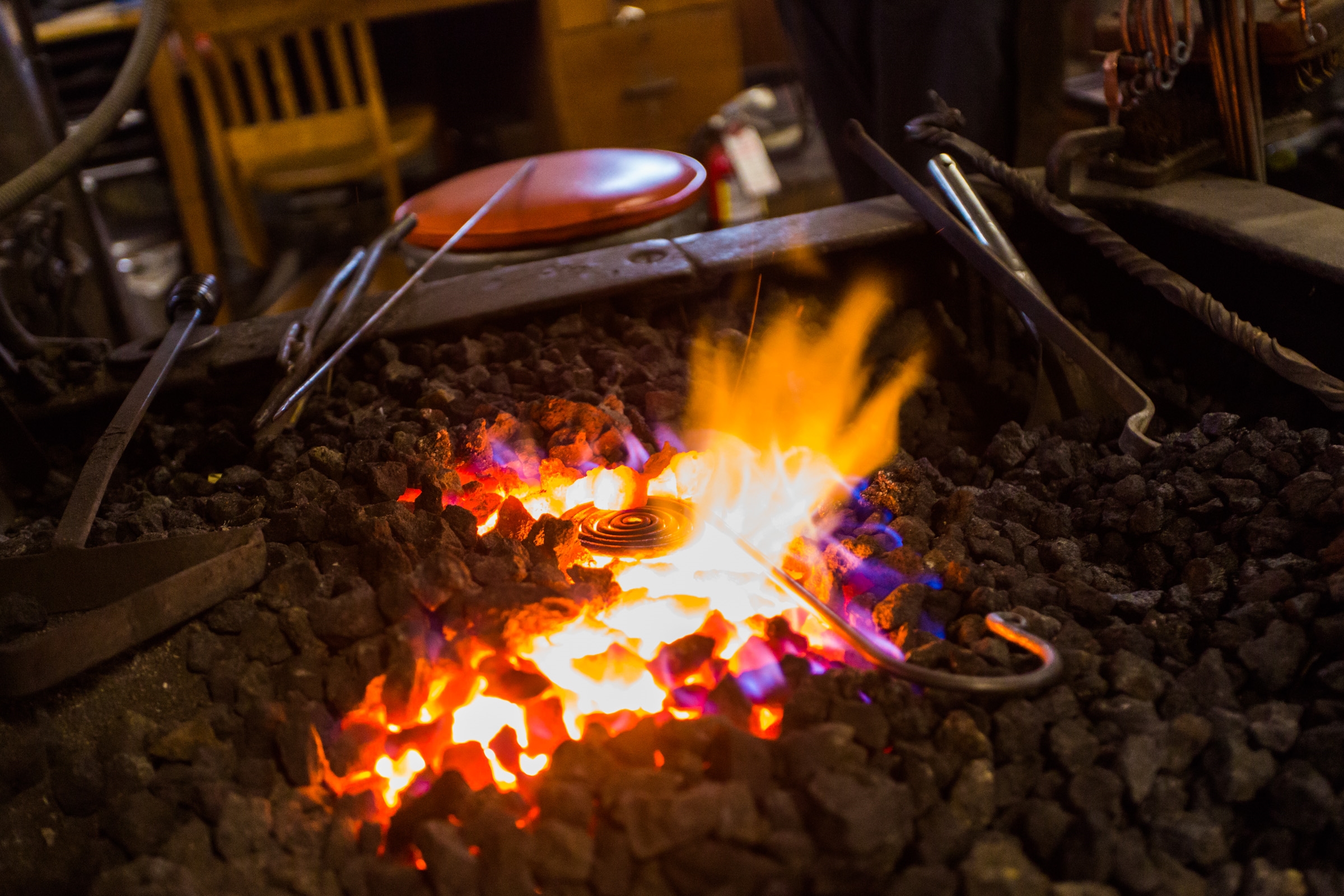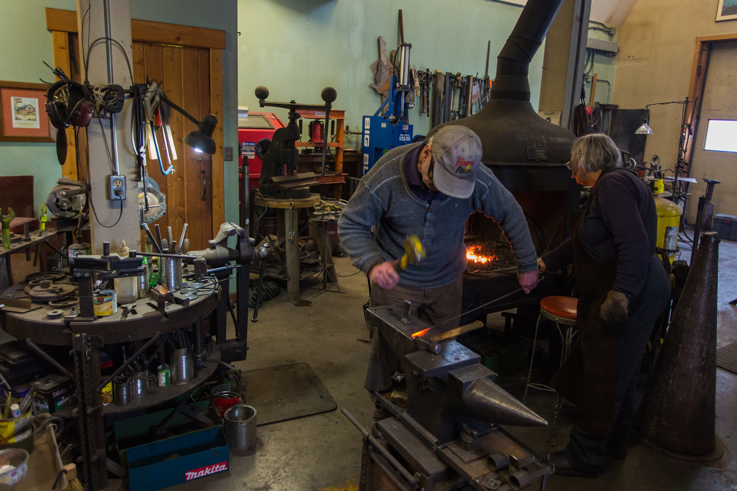 The pair moved their family to British Columbia and set up the Fernie Forge through the Provincial Nominee Program, (relocating workers to rural areas) when the 1893 forge they were working out of came to the end of its natural life in England. After 10 years, they purchased the former Salvation Army Hall in Fernie and launched Eye of the Needle Studio & Gallery.